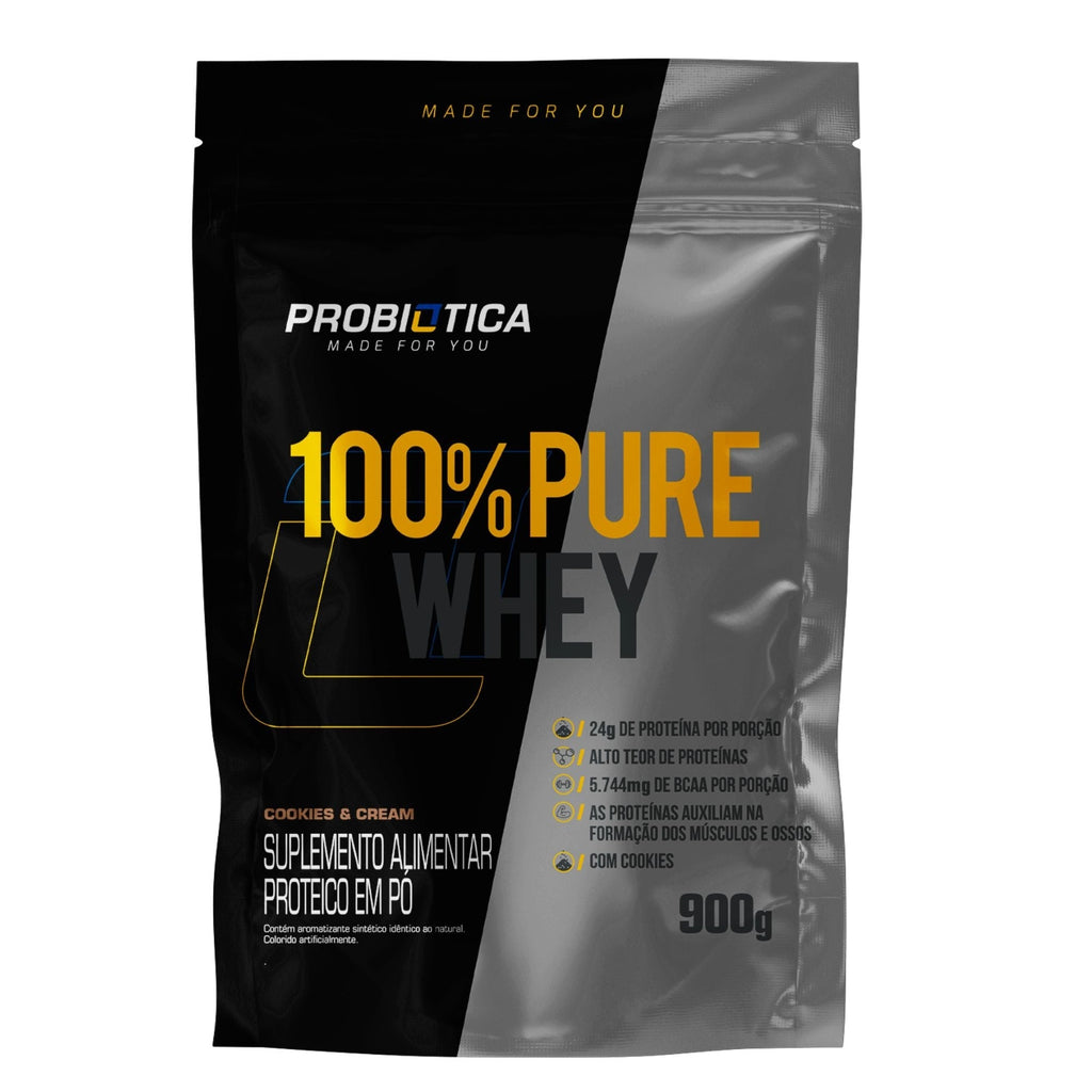 Olá Parceiro(a)! Você está adquirindo um produto 100% Original, somos Distribuidores da marca a mais de 10 anos no mercado com 100% de reputação positiva. Todas as nossas mercadorias são comercializadas com NFe para garantir o compromisso com a credibilidade de nossos produtos. Ótimas compras! whey 100% pure suplemento proteico composto pela Proteína Concentrada do Soro de Leite (Whey Protein Concentrate), matéria-prima elaborada com alta tecnologia e elevada concentração de aminoácidos. De preparo instantâneo, 100% pure whey é indicado para ser tomado antes e/ou após os exercícios. benefícios 21g de proteína por porção Alto teor de proteínas 4.573mg de BCAA** por porção As proteínas auxiliam na formação dos músculos e ossos **Aminoácidos naturalmente presentes nas proteínas do produto. modo de preparo Para o preparo de uma porção, misture 40g (2 dosadores) do produto em 200mL (1 copo) de sua bebida preferida (água gelada, leite desnatado, etc). sugestão de uso: Utilize de uma a duas porções ao dia, ou conforme orientação de nutricionista ou médico ingredientes baunilha: Proteína concentrada do soro do leite (wpc), emulsificante lecitina de soja*, aromatizantes, espessante goma xantana e edulcorante sucralose. não contém glúten. contém derivados de leite E soja. pode conter derivados de ovo. *utilizada na fabricação da proteína do soro do leite com a função de deixar o produto instantâneo (fácil diluição). ingredientes chocolate Proteína concentrada do soro do leite (wpc), cacau alcalino, aromatizantes, emulsificante lecitina de soja*, espessante goma xantana e edulcorante sucralose. não contém glúten. contém derivados de leite E soja. pode conter derivados de ovo. *utilizada na fabricação da proteína do soro do leite com a função de deixar o produto instantâneo (fácil diluição). ingredientes morango Proteína concentrada do soro do leite (wpc), aromatizante, emulsificante lecitina de soja*, acidulante ácido cítrico, espessante goma xantana, edulcorante sucralose e corantes artificiais amaranto e azul brilhante fcf. não contém glúten. contém derivados de leite E soja. pode conter derivados de ovo. *utilizada na fabricação da proteína do soro do leite com a função de deixar o produto instantâneo (fácil diluição). ingredientes cookies Proteína concentrada do soro do leite (wpc), cookies sabor chocolate sem adição de açúcares (farinha de trigo enriquecida com ferro e ácido fólico, gordura de palma, cacau em pó, fécula de mandioca, sal, estabilizante polidextrose, edulcorantes sorbitol e sucralose, fermentos químicos bicarbonato de sódio e pirofosfato ácido de sódio, aromatizante e emulsificante lecitina de soja), granulado de chocolate (açúcar, gordura vegetal, cacau em pó, sal, espessante goma arábica, emulsificante lecitina de soja, corante artificial vermelho 40 e aromatizante), cacau alcalino em pó, sal, aromatizantes, espessante goma xantana e edulcorante sucralose. contém glúten. contém derivados de leite, soja E trigo. pode conter ovo, amendoim, aveia, avelã, C A S T A N H A - D E - C A J u, castanha-do-pará, centeio, cevada, macadâmia E nozes. importante: este produto não substitui uma alimentação equilibrada E seu consumo deve ser orientado por nutricionista ou médico. anvisa: registro isento conforme resolução rdc 27 de 06 de agosto de 2010 anexo i.